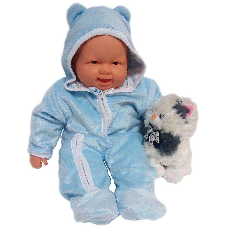 Комбинезон с капюшоном декорированный ушками, с закрытыми ножками, рукавчики на манжетиках, спереди на молнии до конца одной ножки.
