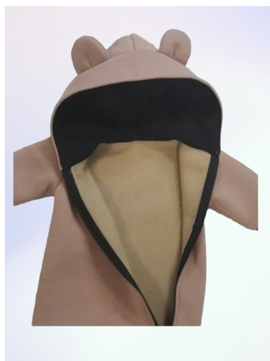 "МоёДитё" комбинезон выполнен из футера с начёсом. Комбинезон с капюшоном на подкладке и декорирован сверху ушками, с закрытыми ножками, рукава на манжетах, спереди косая молния до конца одной ножки. Шапочка из кашкорсе можно одевать как с отворотом, так и без. Очень хорошо тянется.