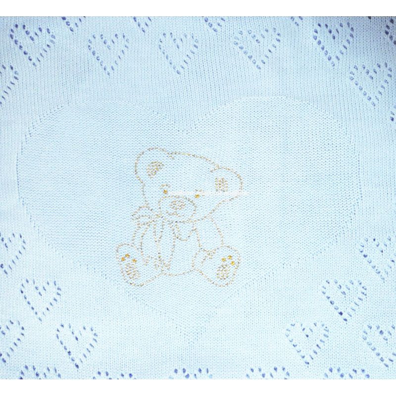 Плед вязаный, с ажурным рисунком, в центре рисунок в виде мишки из страз.