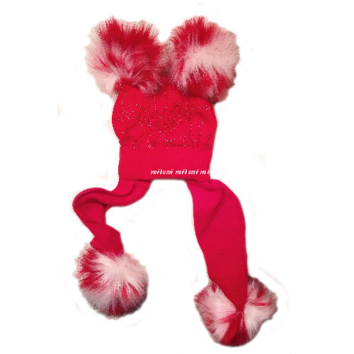 Шапка с двумя помпонами, и вшитым шарфом. Шарфик на концах украшен меховым помпоном.
